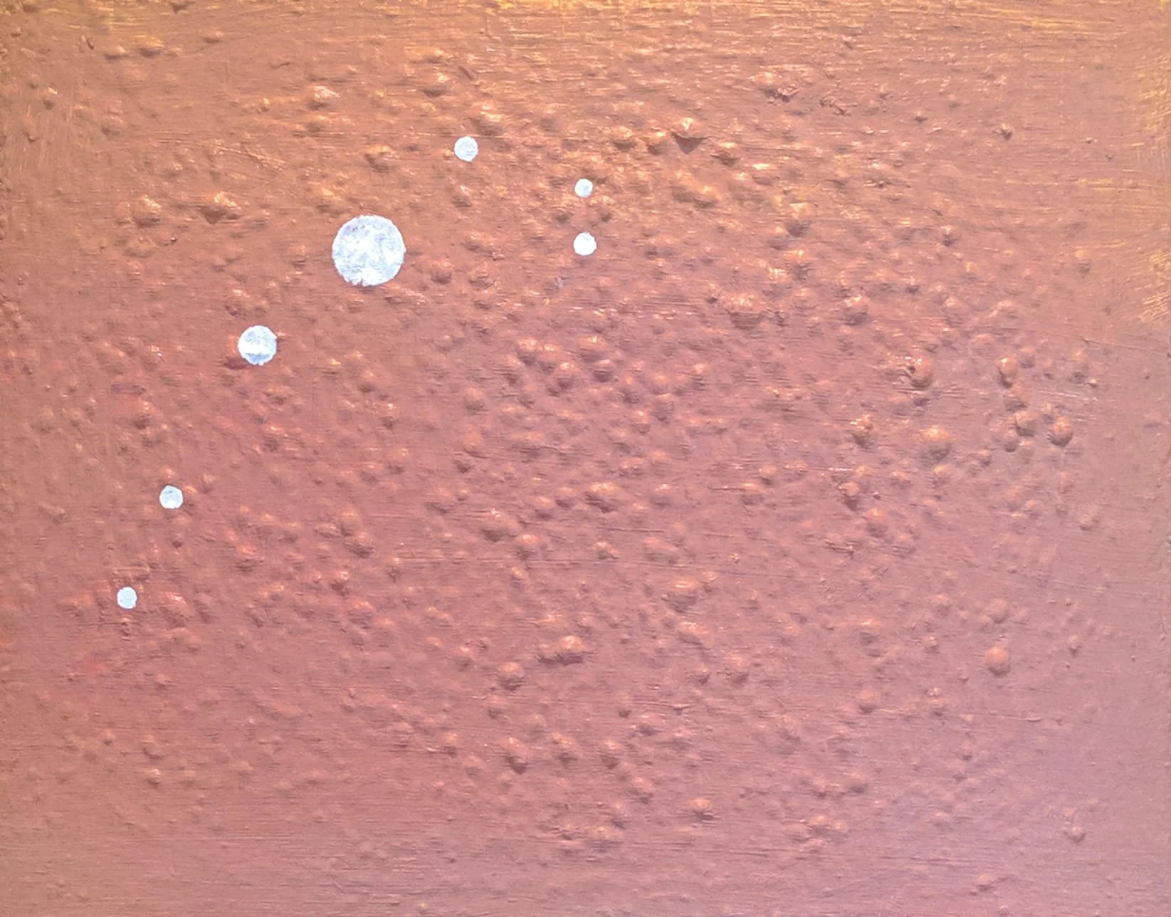 Het bewandelen en bestuderen van deze onbekende weg betekent ook dat de schilderijen 1 t/m 6 flink onderhevig zijn geweest aan een veranderde structuur, ontstaan door velen jaren achtereen, tientallen keren het schilderij over te schilderen en opnieuw op te zetten. Er hangt er eentje bij die 145 keer is overgeschilderd.